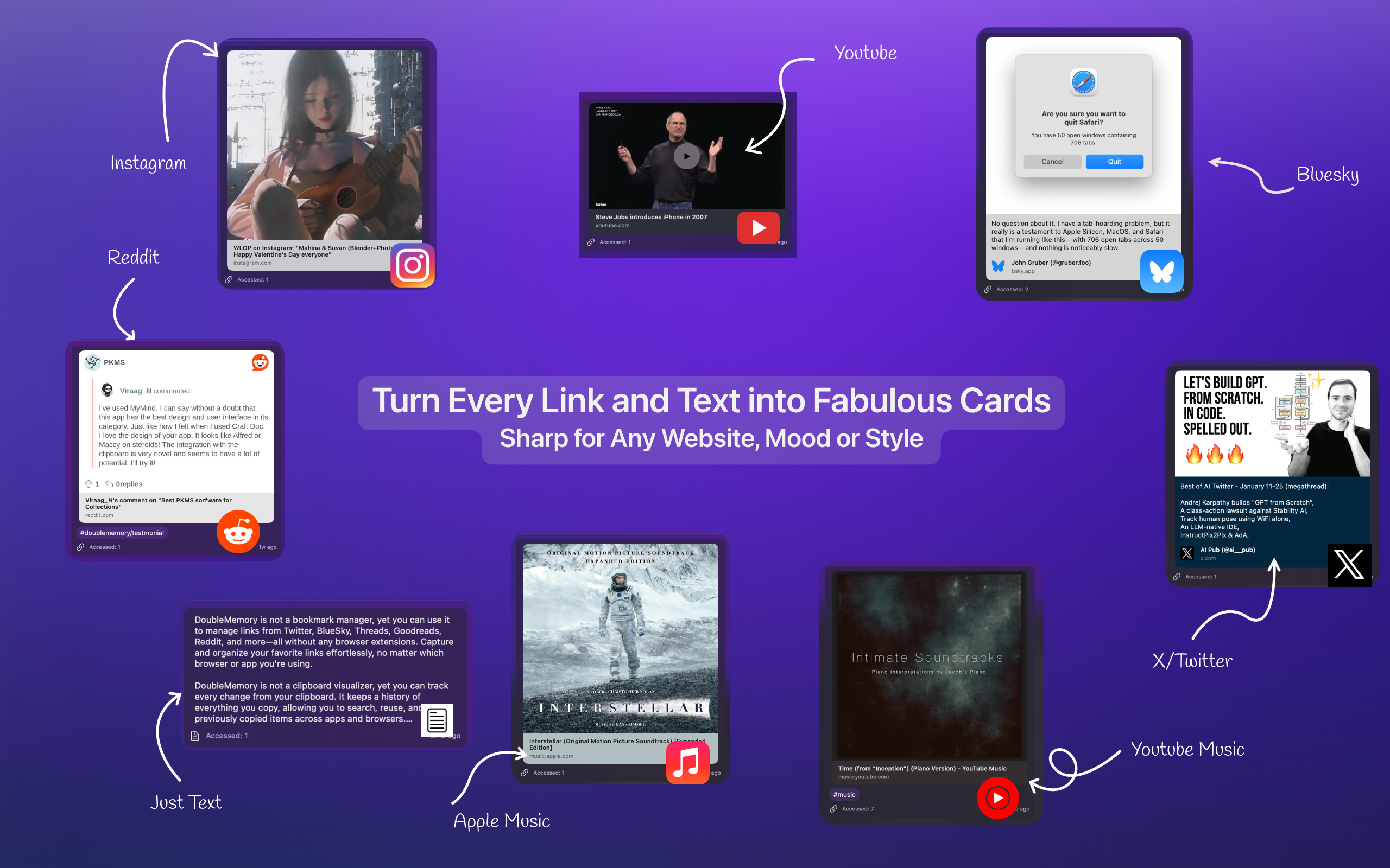 Turn your double ⌘ + C into a superpower—capture bookmarks, clipboard snippets, and read-later gems without extensions. Everything lands on a visually stunning mood board that sparks creativity and upgrades your memory. The cure for tab hoarding and Mac Chaos.